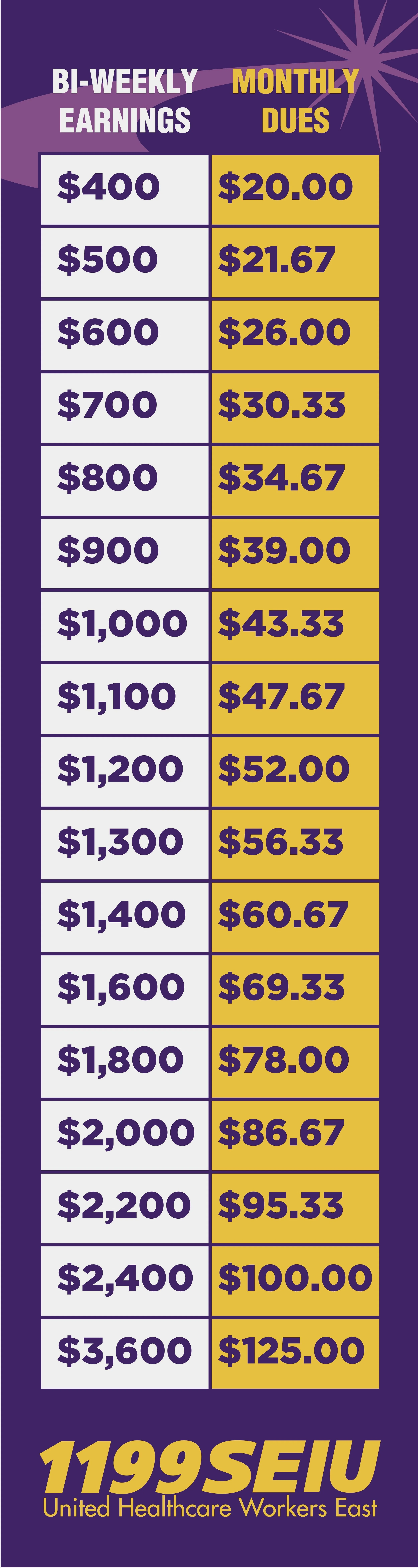 ✔️Dues are are 2% of our base wages (not including OT or differentials), and are capped at $125 a month for our highest wage earners.